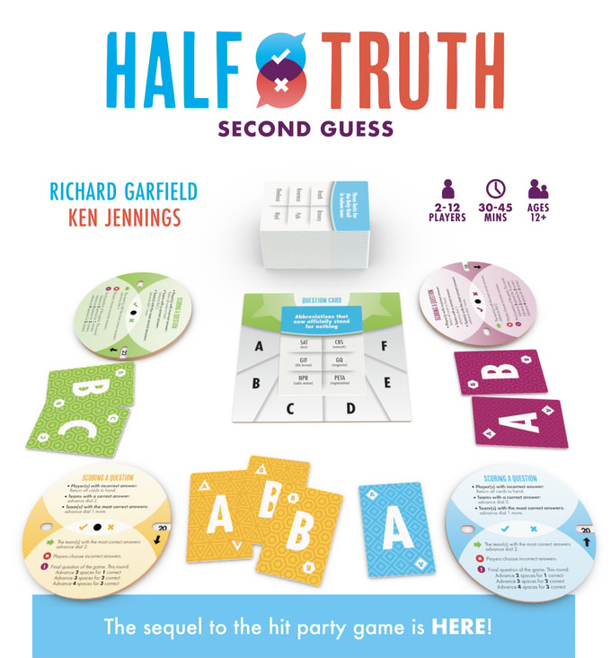 Half Truth: Second Guess is a trivia party game designed by Richard Garfield and Ken Jennings, published by Nighthawk Interactive. It's a sequel to Richard and Ken's 2020 game Half Truth.