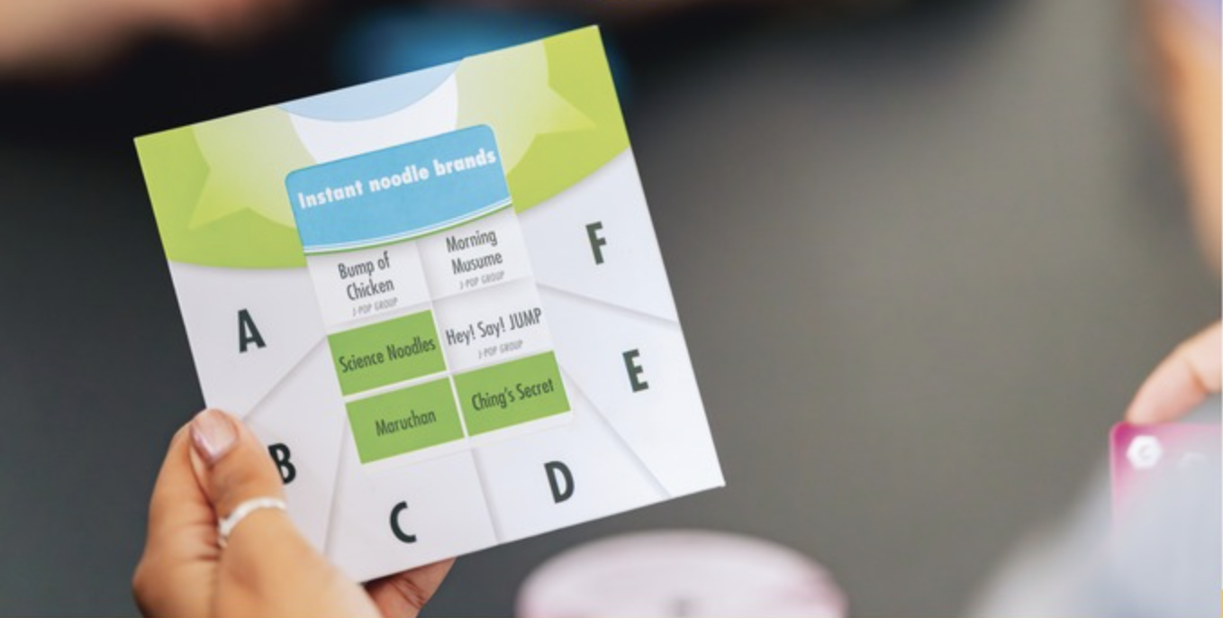 A quick redesign of the answer mat to add a pocket, and now we could pass the question card around too! Even while sitting at a table, sometimes you just want to grab the card and read it carefully yourself.