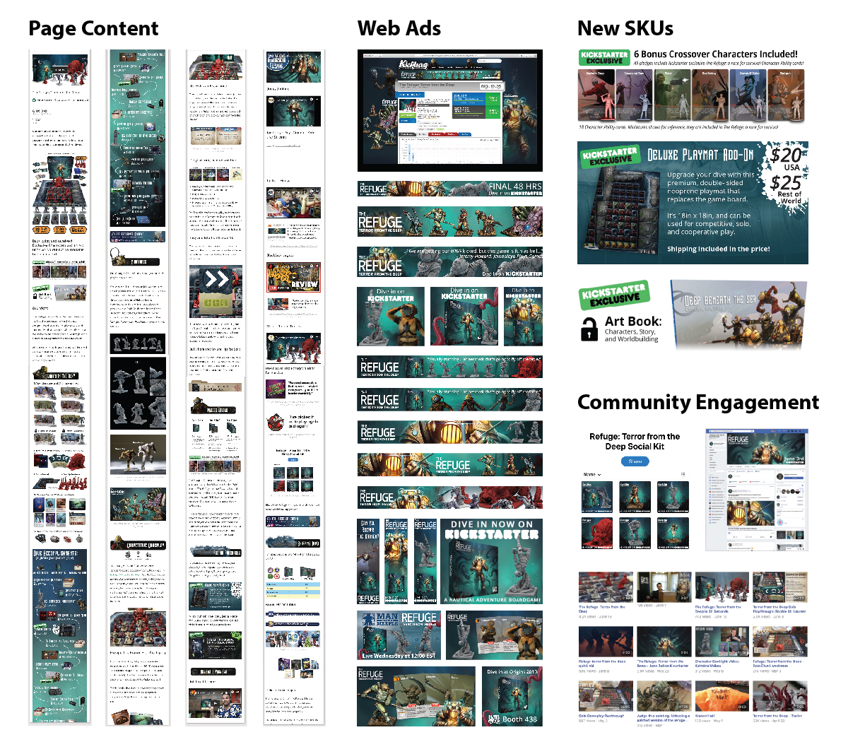 From Day 1 of development, Terror from the Deep was a Kickstarter product. We built stretch goals and planning into our design and development process, and Brieger Creative suggested new SKUs and Kickstarter exclusives that brought in additional backers and revenue. Refuge: Terror from the Deep's Kickstarter campaign finished in July of 2019 and raised $106,945 from 1457 backers, making it B&B Games' largest campaign to date.