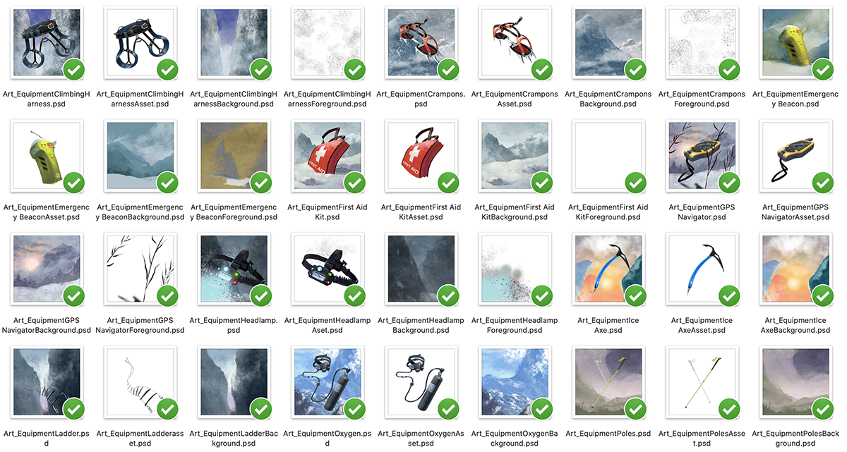 After some development from Deep Water Games, the Brieger Creative team was brought on to complete 7 Summits gameplay development and art direction. Gameplay development included content design for additional mission and equipment cards to give the game more variety, and balancing on the incentives within the game — reworking where bonuses were given on the board and how victory points were awarded.