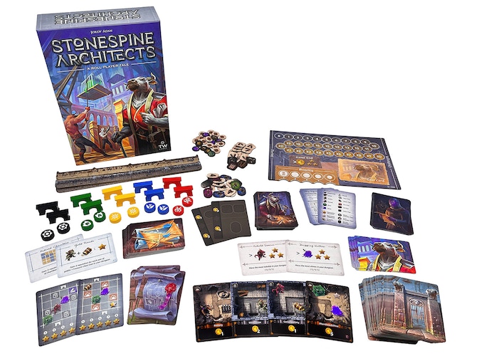Stonespine Architects, designed by Jordy Adan and published by Thunderworks Games, is a drafting game where players compete to build the greatest fantasy dungeon.