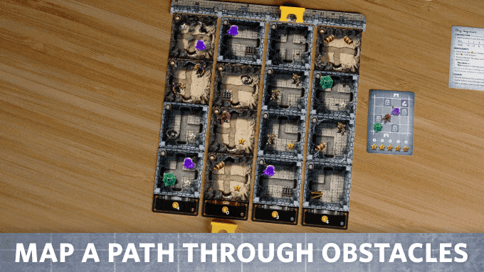 The core components of Stonespine Architects are its 100+ draftable Chamber Cards and the 32 Challenge Cards used for scoring. Throughout development, we tested many variations on these cards to improve the decision-making and scoring experience for the players as they chose cards and built their dungeon layout.